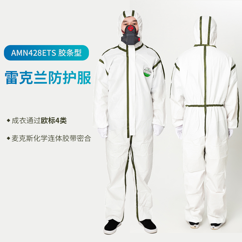 雷克蘭(Lakeland)AMN428ETS防護(hù)服連體膠條型防化服白色帶帽防
